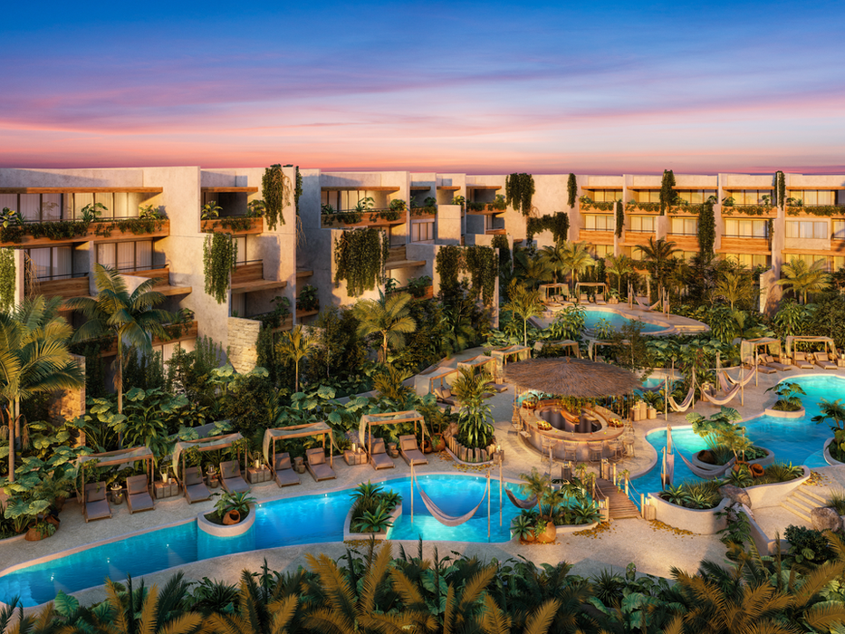 In Tulum , the dazzling Caribbean coast east of the Yucatan Peninsula, an extraordinary space slowly emerges from the jungle, with 95 branded residences and 45 bespoke hotel suites. An eco-chic paradise awaits you amid lush tropical vegetation that celebrates the ancient rhythm of local life.